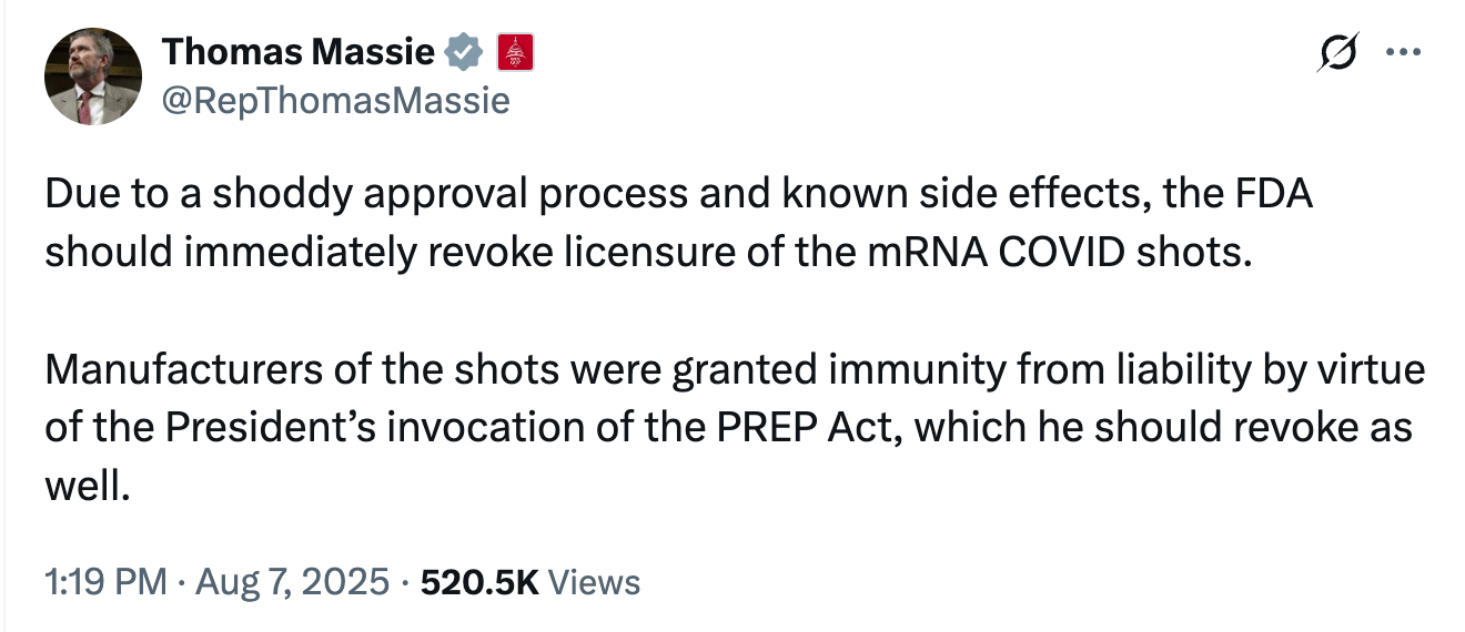 Trump and Massie don’t always see eye to eye, but on this point, we can all agree: mRNA shots should never have been on the market, and they shouldn’t be allowed on the market now. Here’s why. . .